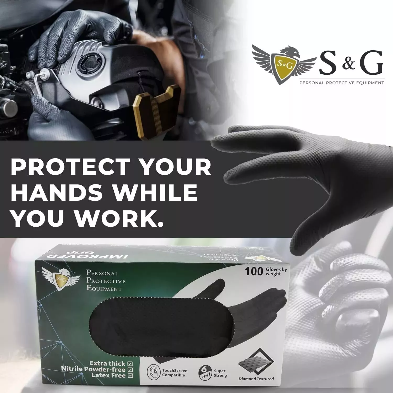 Heavy-Duty Disposable 6 Mil Black Nitrile Gloves – Diamond Grip | 1000 Pieces